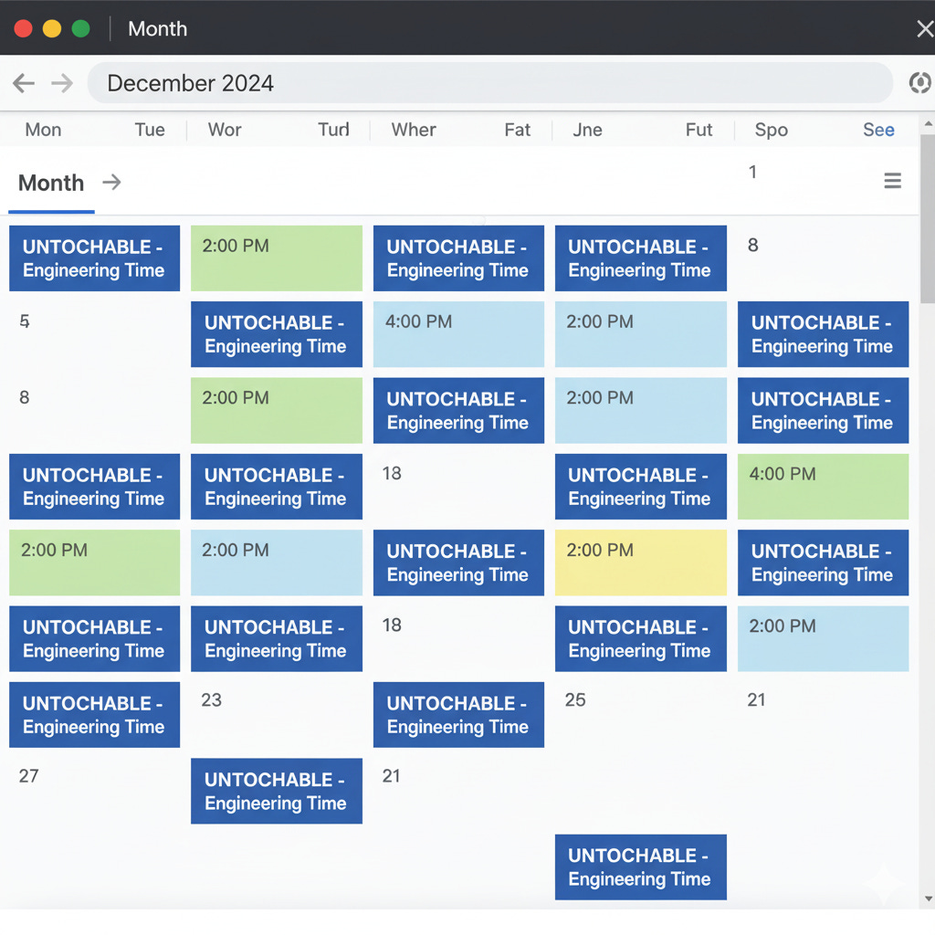 Your action: Block 2 PM - 4 PM today for the next 30 days. Label it “Engineering Time” if you need corporate camouflage. Defend it like production uptime.